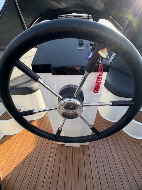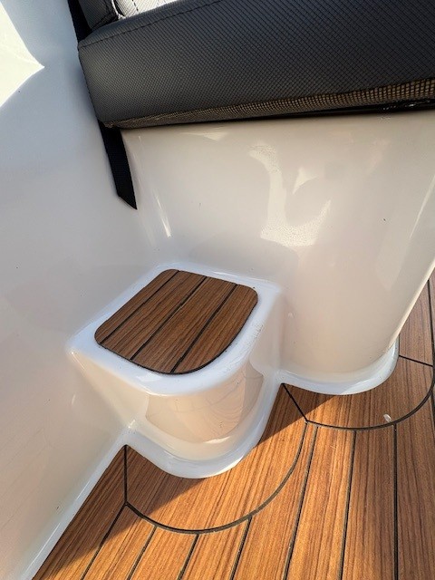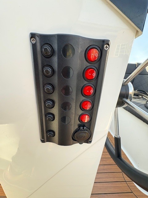 Deluxe package: Consisting of navigation lights in the hull and a 360 pole nav light, automatic bilge pump, switch panel including a 12v socket and finteak flooring in cockpit and bathing platform.