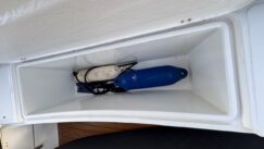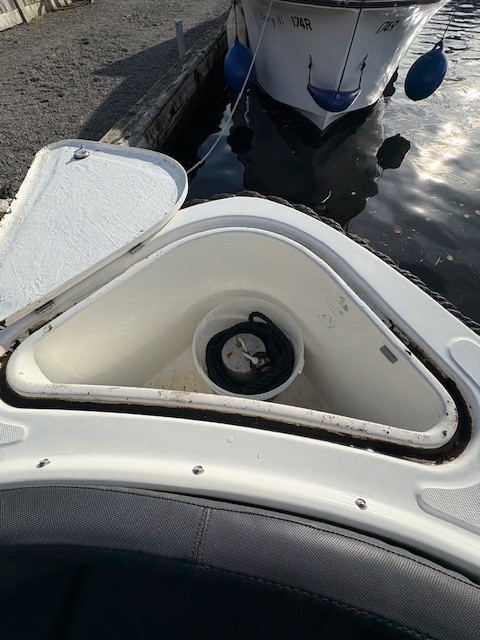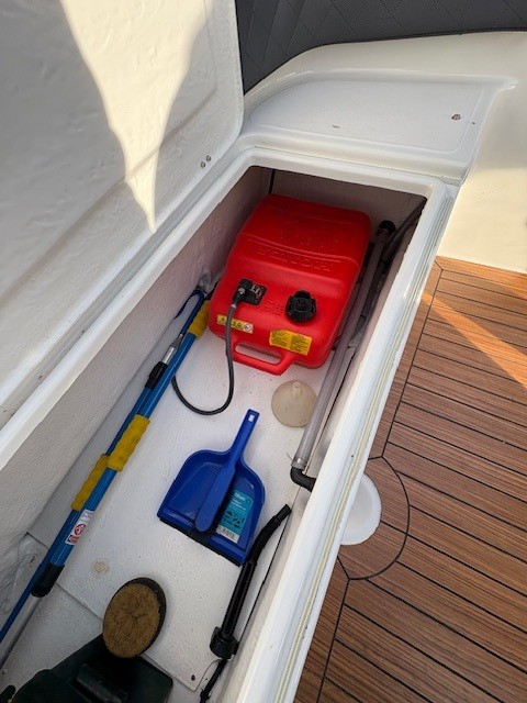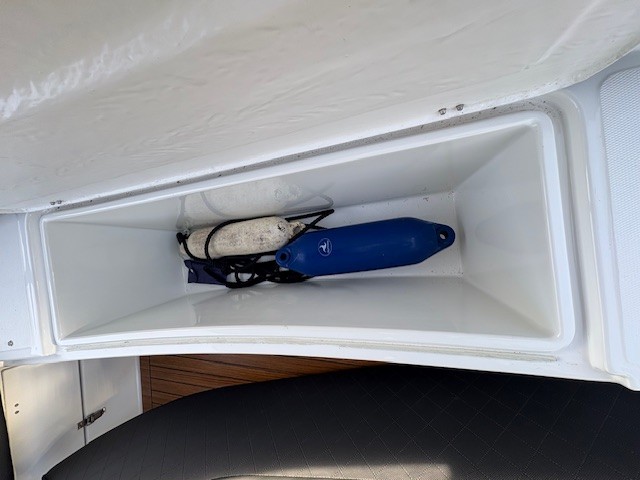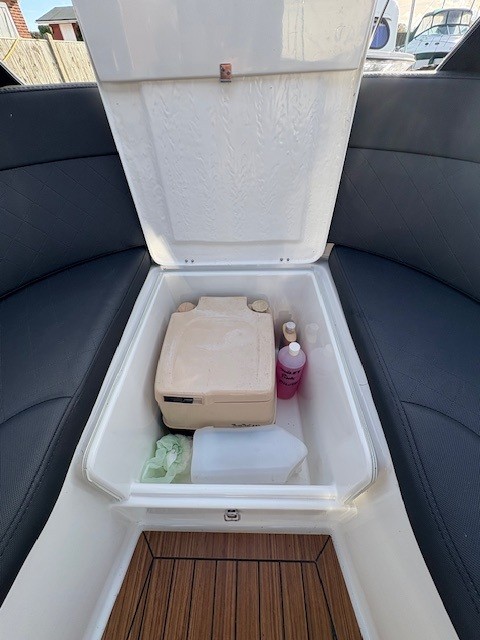 Storage available under seats, space for a porta loo in forward locker, large storage area under helm seat