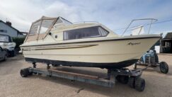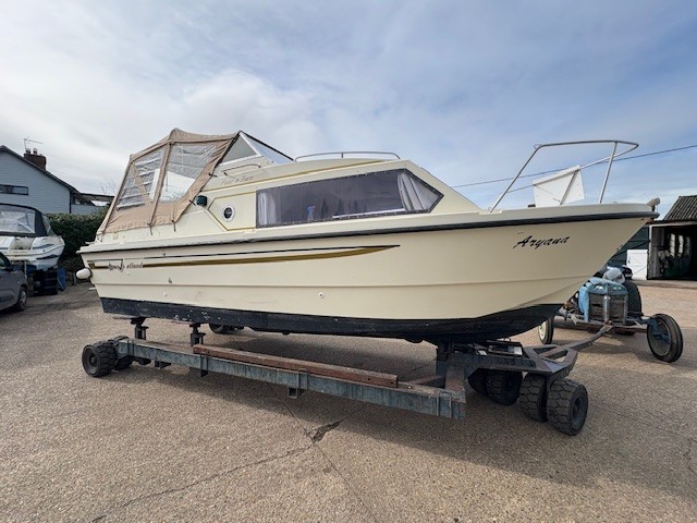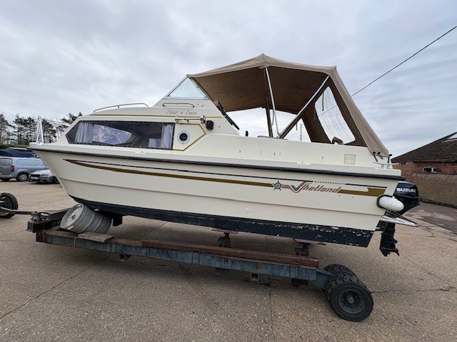 1990 Shetland 4 plus 2 powered by a 2022 Suzuki DF20A  Four Stroke, Petrol, EFI outboard engine for immediate sale.